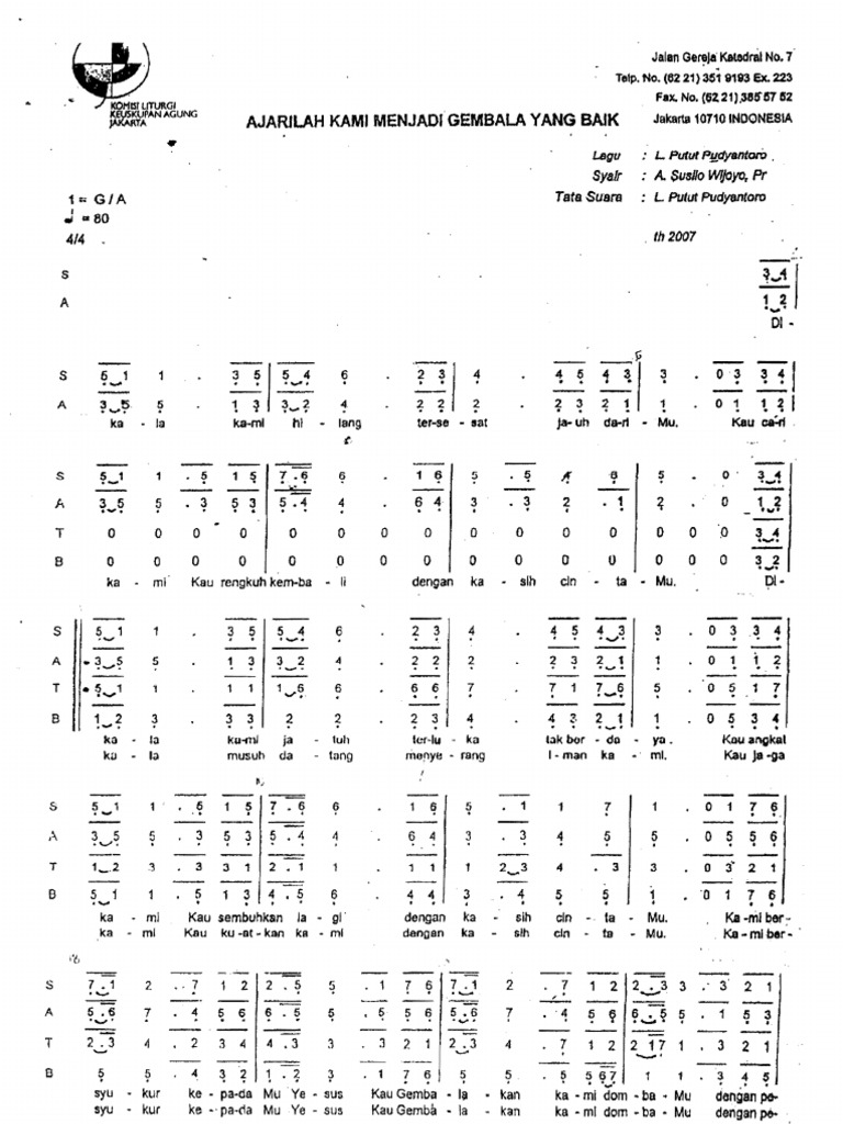 Blog ini sebagai sarana untuk berbagi artikel musik liturgi dan juga partitur partitur lagu SATB terutama bagi teman-teman penggiat Paduan Suara untuk mendapatkan lagu yang bisa digunakan sebagai sarana penunjang Perayaan Ekaristi. Ajarilah kami bahasa cintaMu. C Ajarilah Kami G Bahasa CintaMu D Agar Kami Dekat G PadaMu Ya Tuhanku C Ajarilah Kami G Em Bahasa CintaMu Am D G Agar Kami.