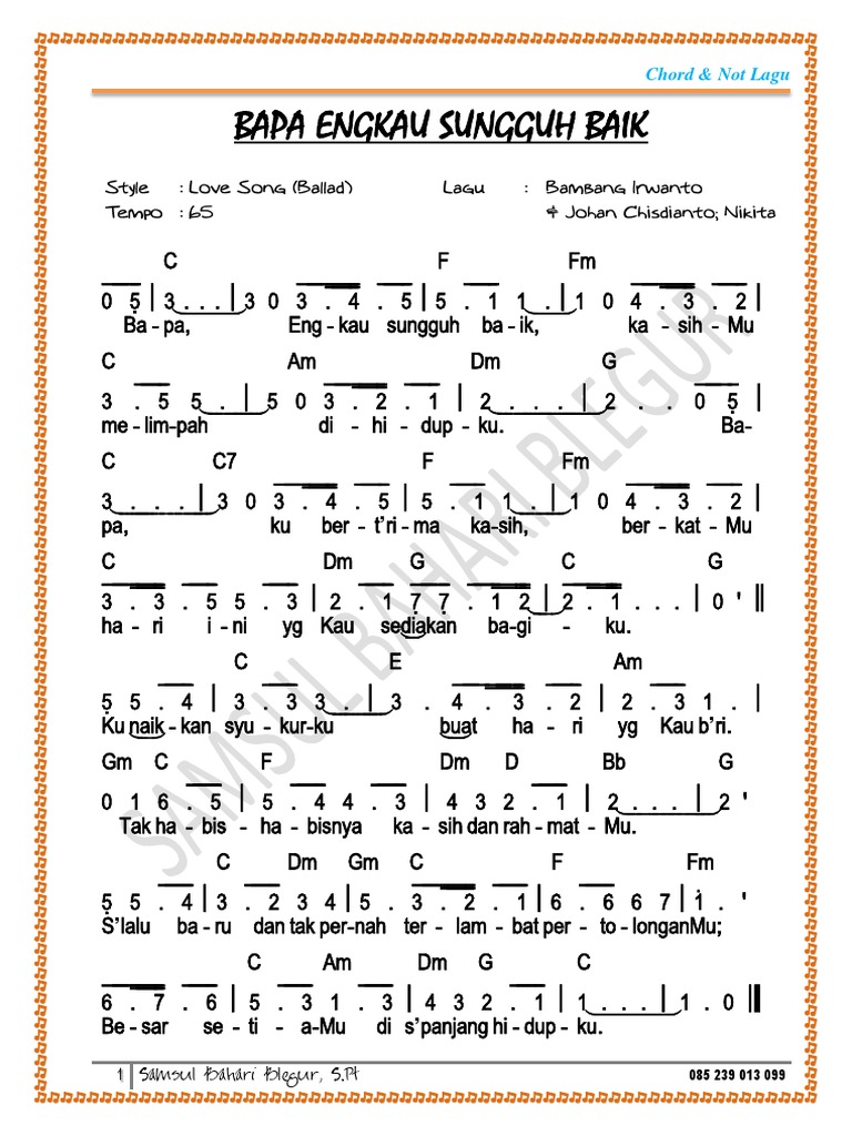 Not Angka Lagu Rohani Bapa Engkau Sungguh Baik